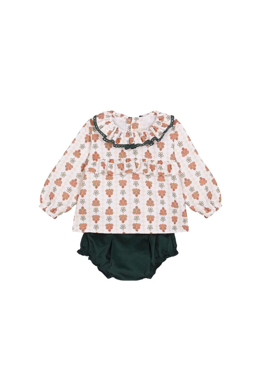 birinitらしいお花のパターンがかわいいブラウスとブルマのセットアップです♩