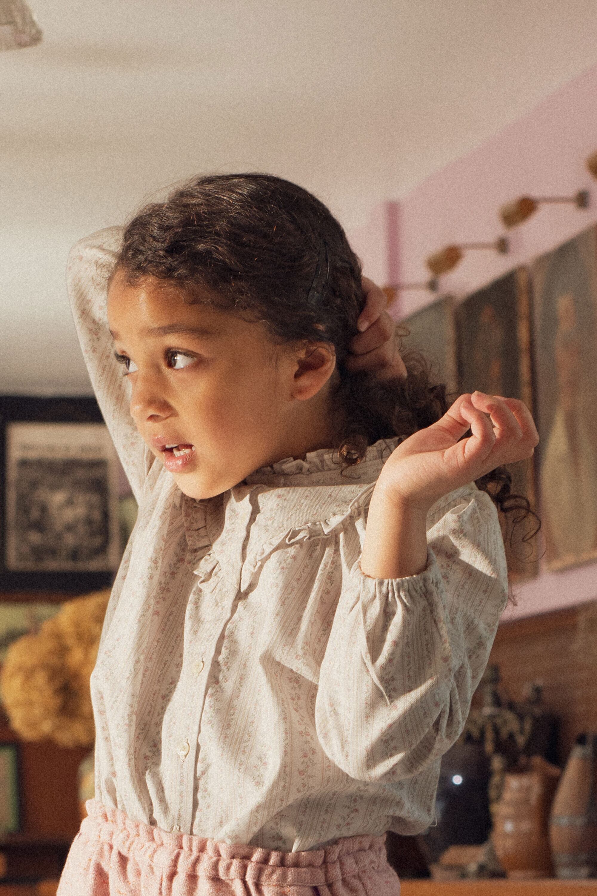 ヴィクトリア調をイメージした、繊細で可憐なヴィンテージプリントのブラウス。