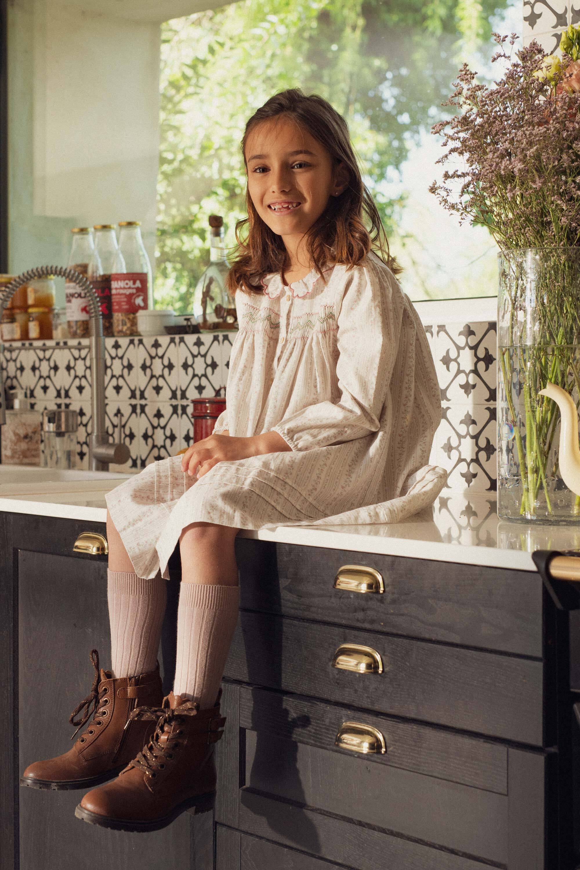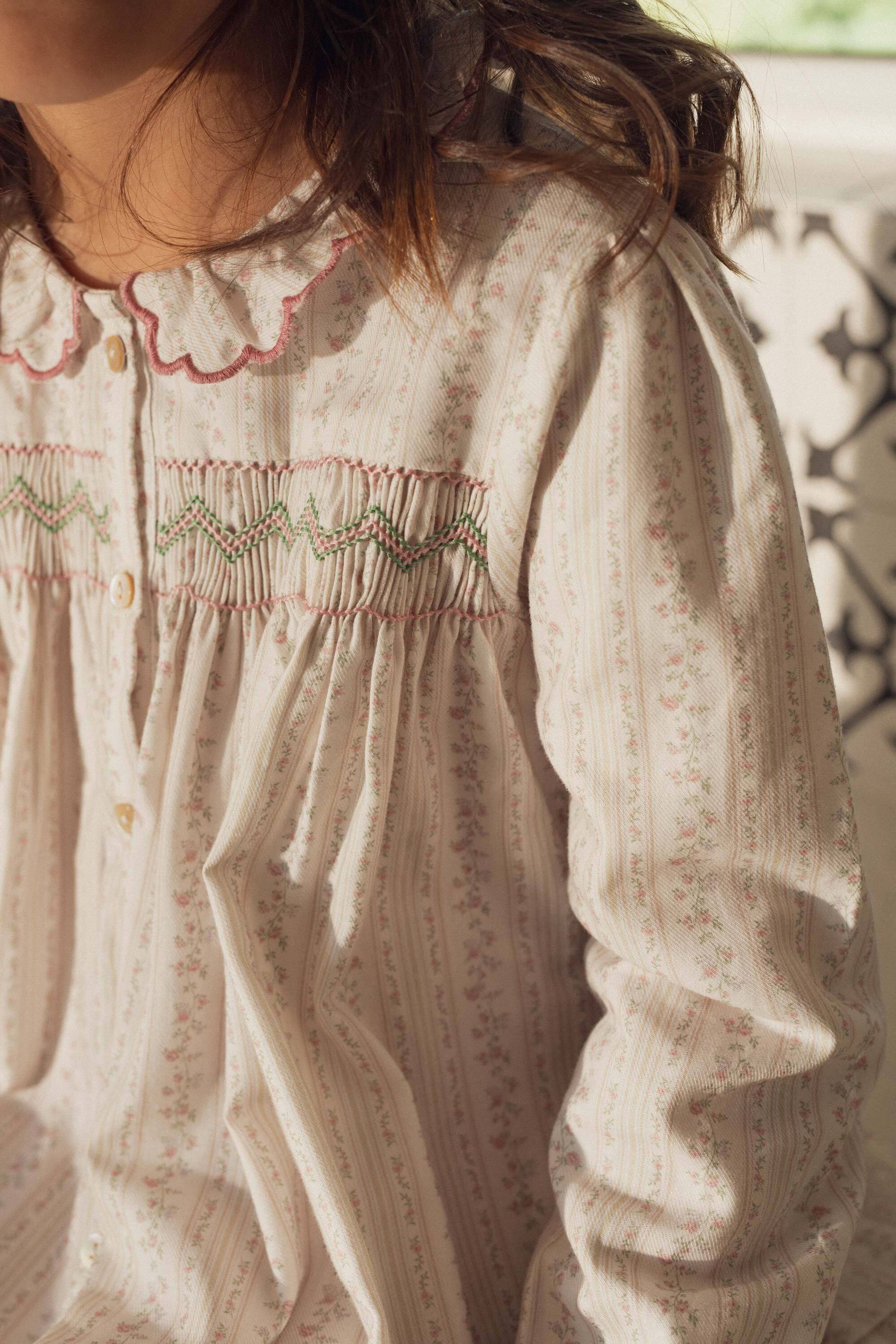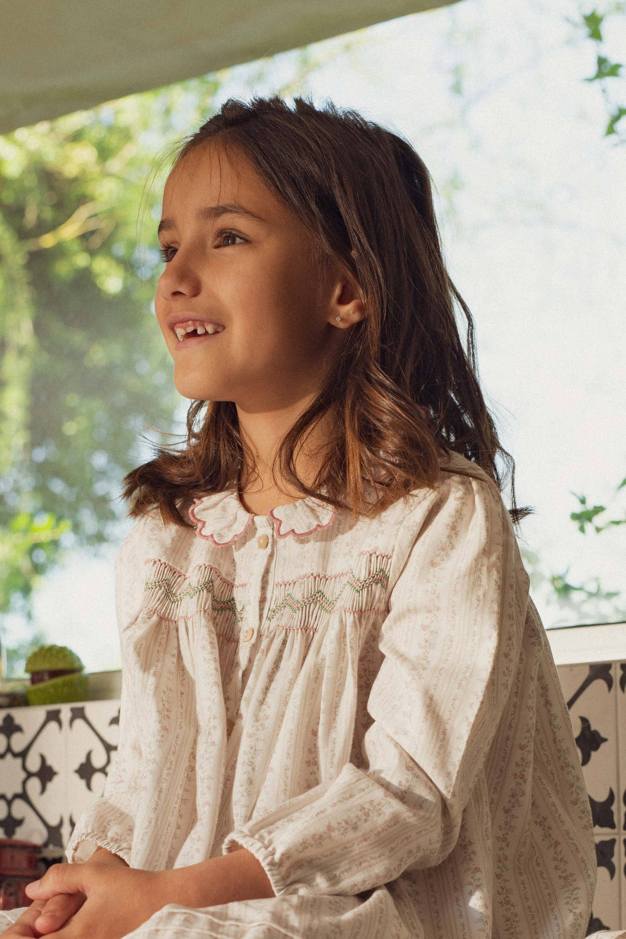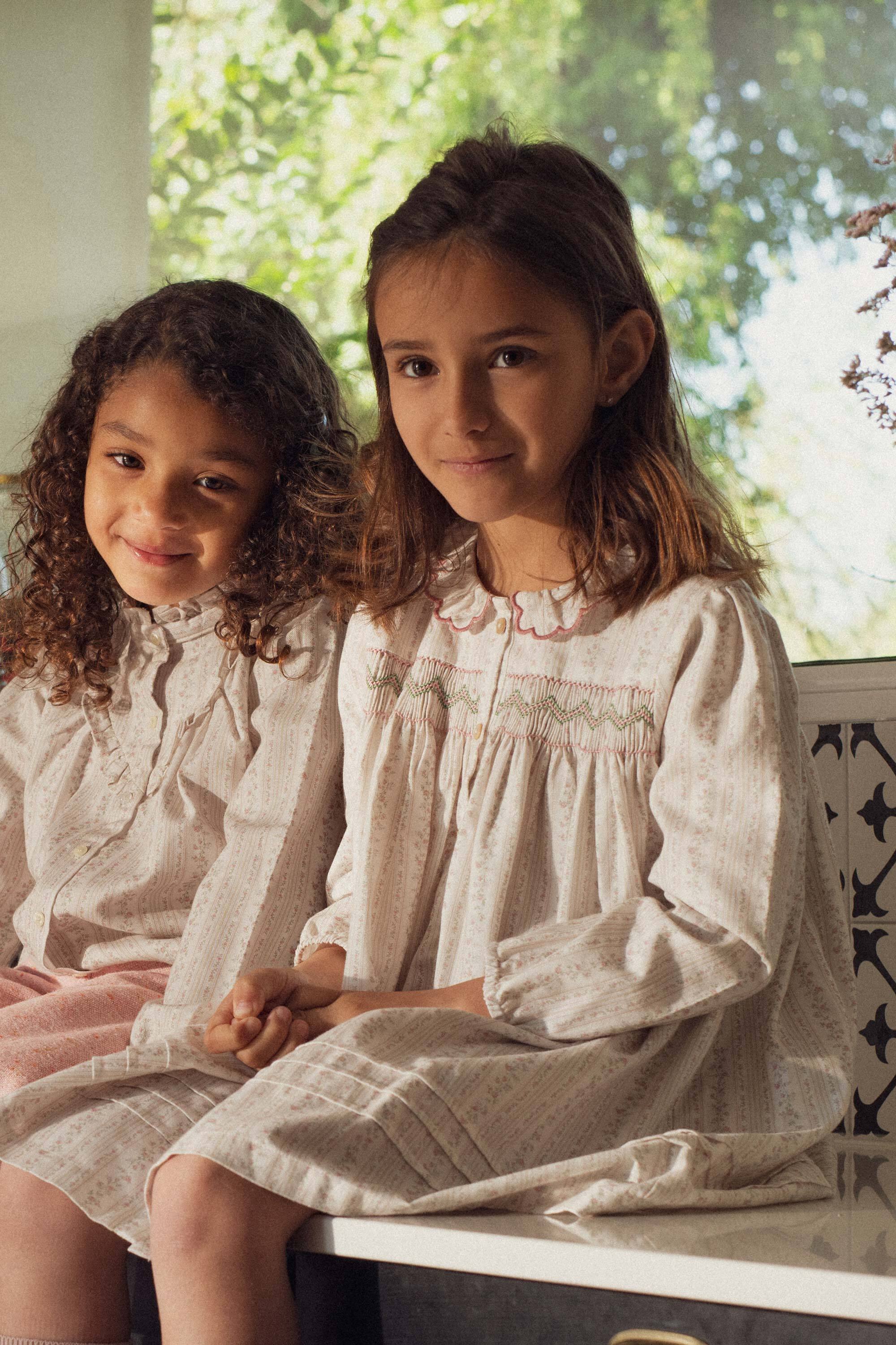 アマンダドレスは、ゆったりとしたシルエットと洗練されたディテールがとても魅力的な一着です。ビクトリア調の他にはないヴィンテージプリントと、オーガニック素材の柔らかさが魅力です。