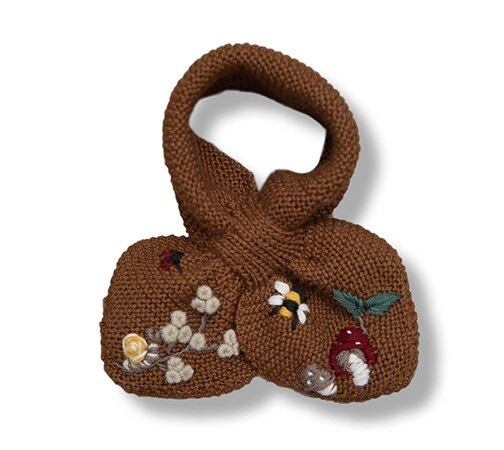 柔らかなメリノウールで手編みされているスカーフ。