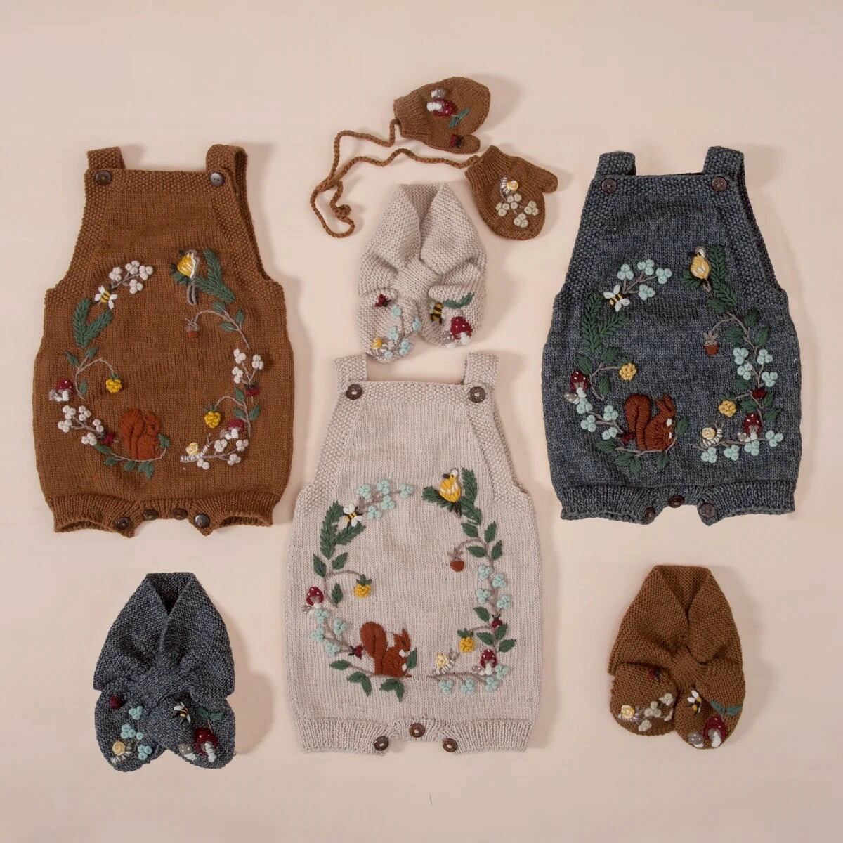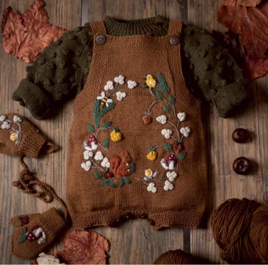 森の世界を思わせる小さなモチーフがちりばめられ、マルハナバチ、カタツムリ、そして愛らしいてんとう虫といった楽しいディテールが随所に散りばめられた、愛らしい一枚です。